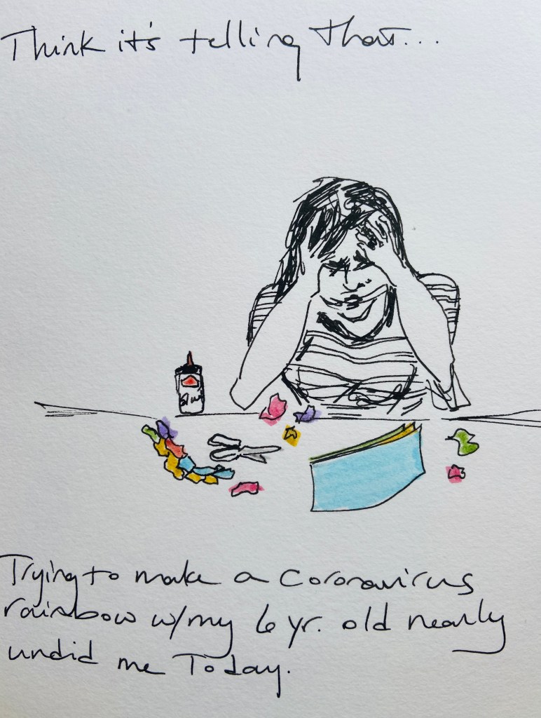 I keep opening my day-planner to March, even though it’s May, because that is when time stopped for us. I don’t know how to keep a record of these days, but it seems important to try.